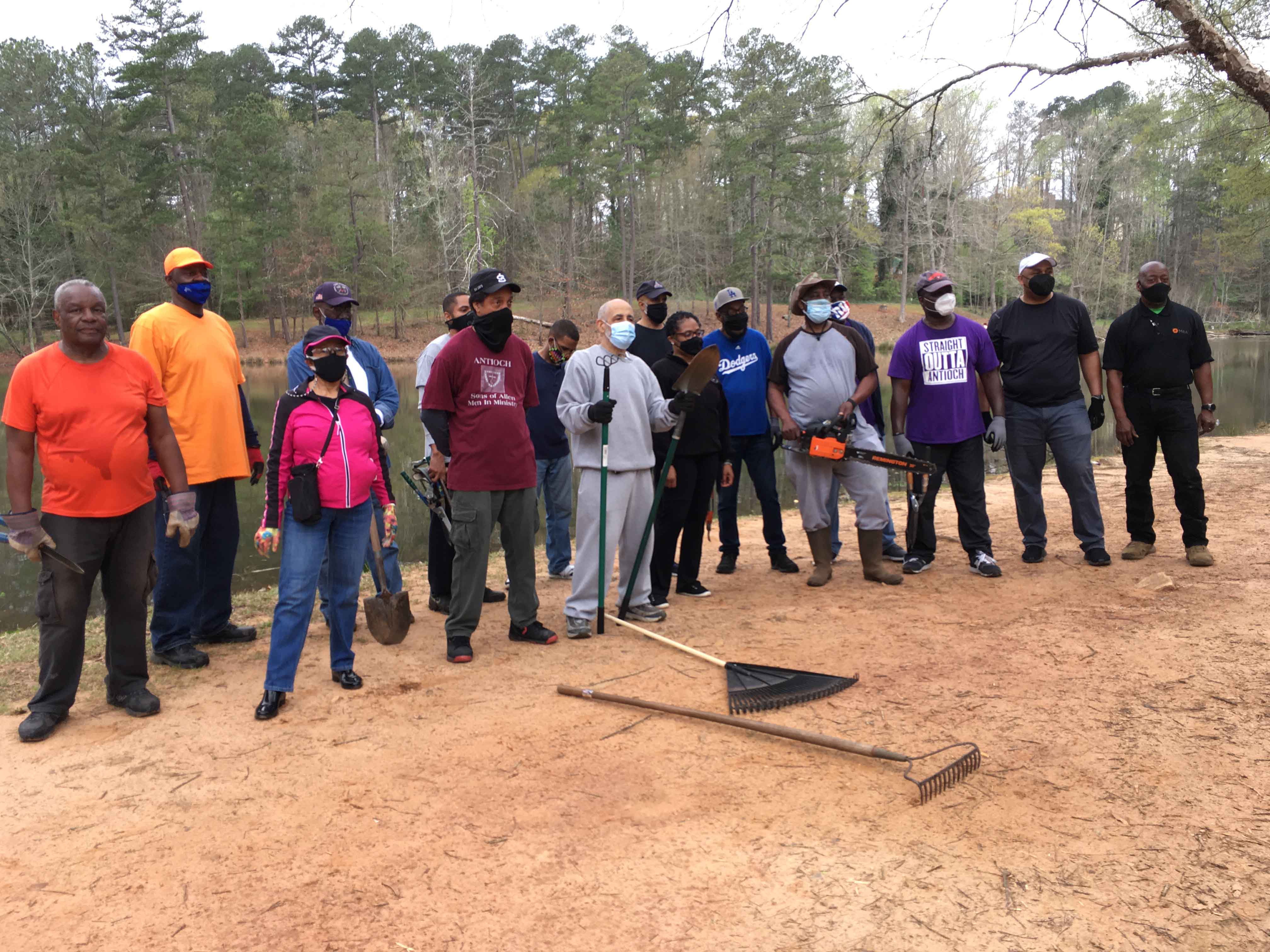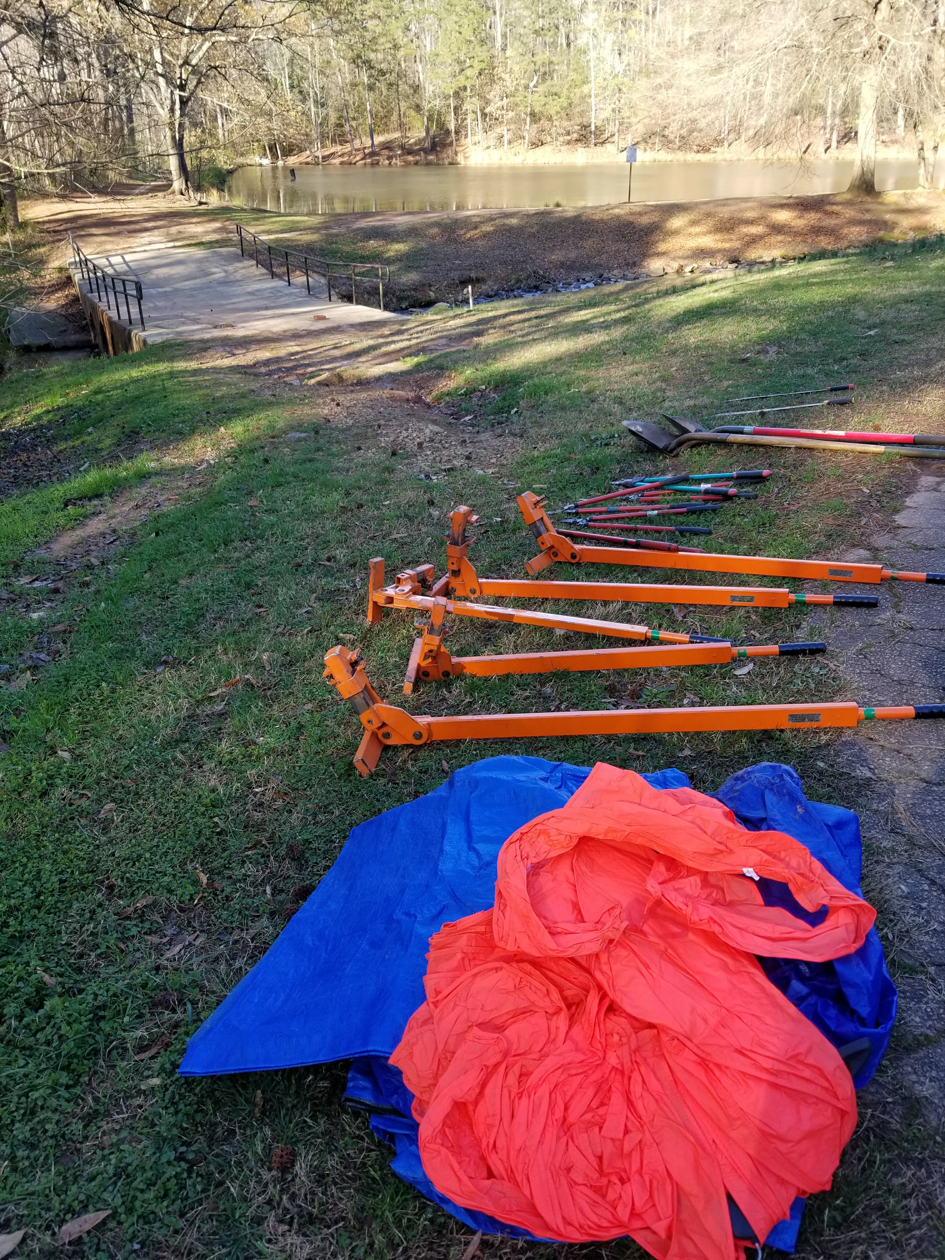 Ongoing project to clear paths around the small lake and throughout the park.