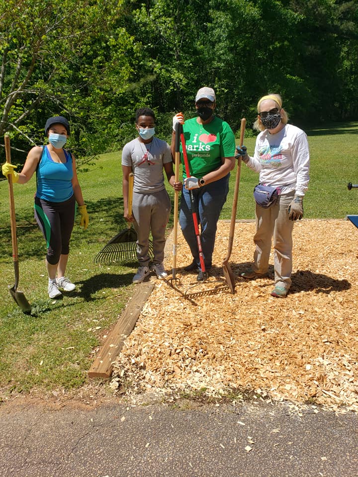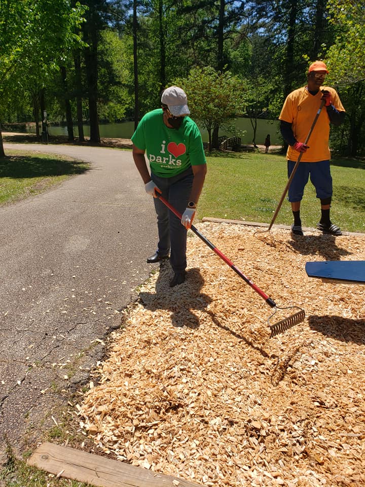 Friends prepare Fitness Stations thanks to UPS and Park Pride Grants